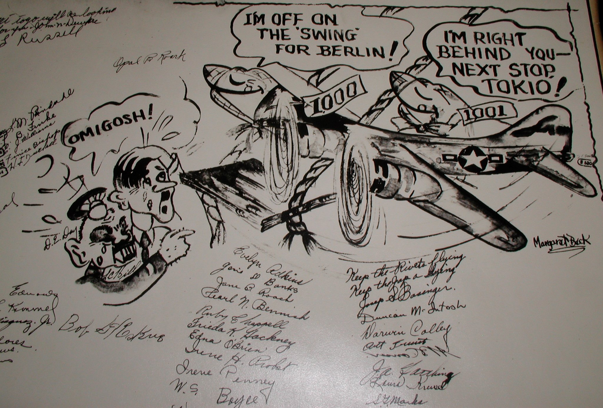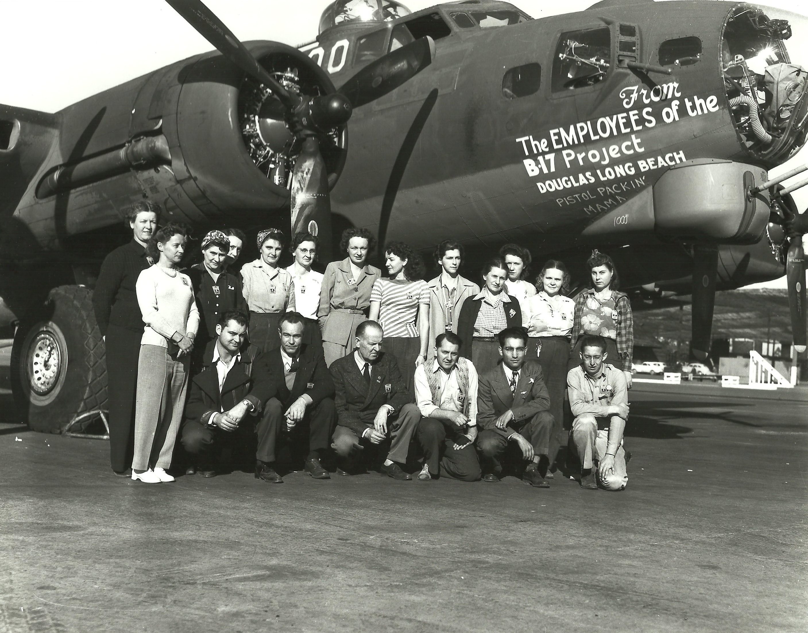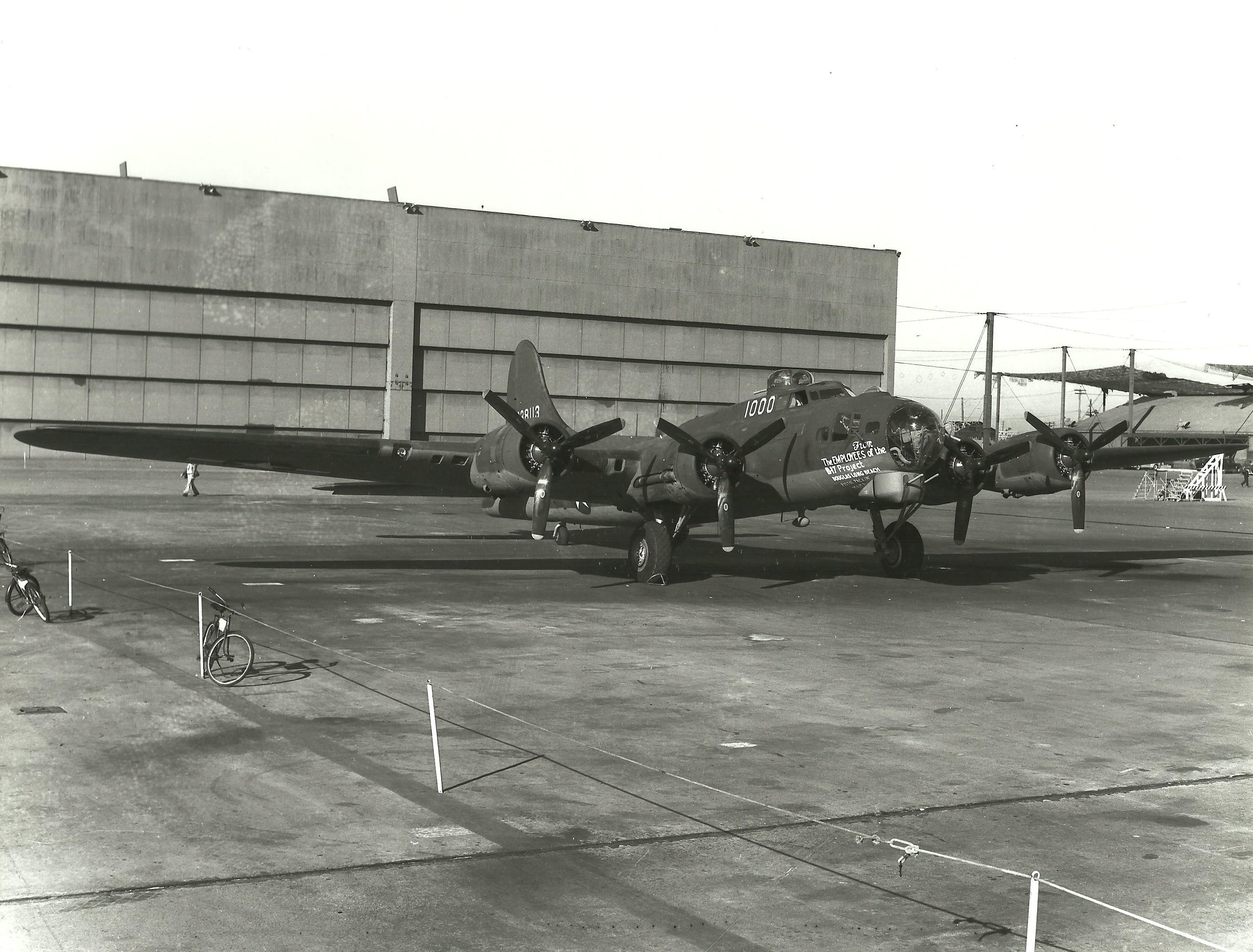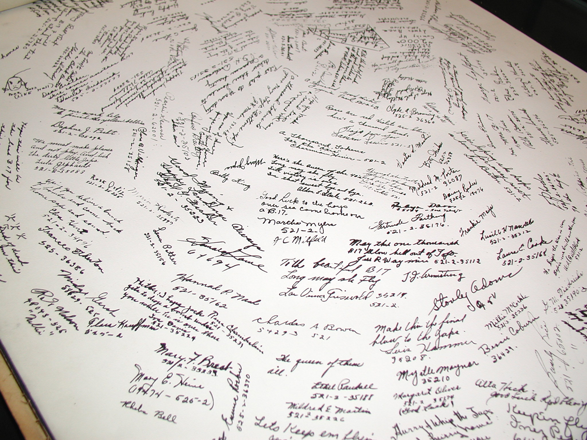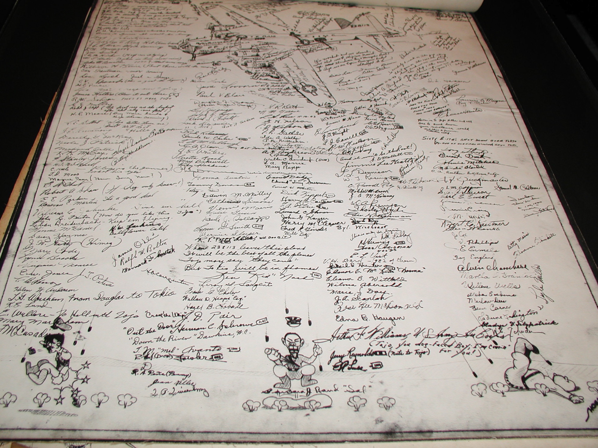 Late 1943 the Douglas Long Beach plant produced it’s 1000th B-17 bomber model G. The workers of the Douglas plant all payed for this special plane by bying war bonds. A book was made with photos, newspaper clippings about the plane and all the Douglas plant workers signed the book.