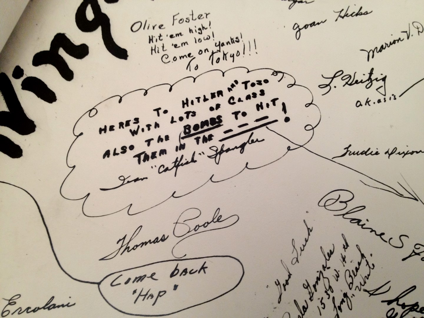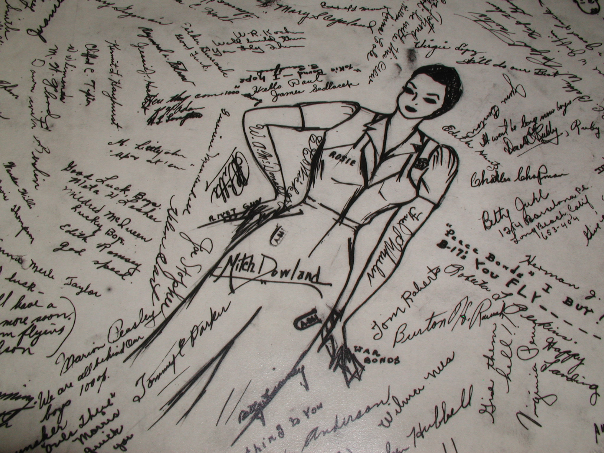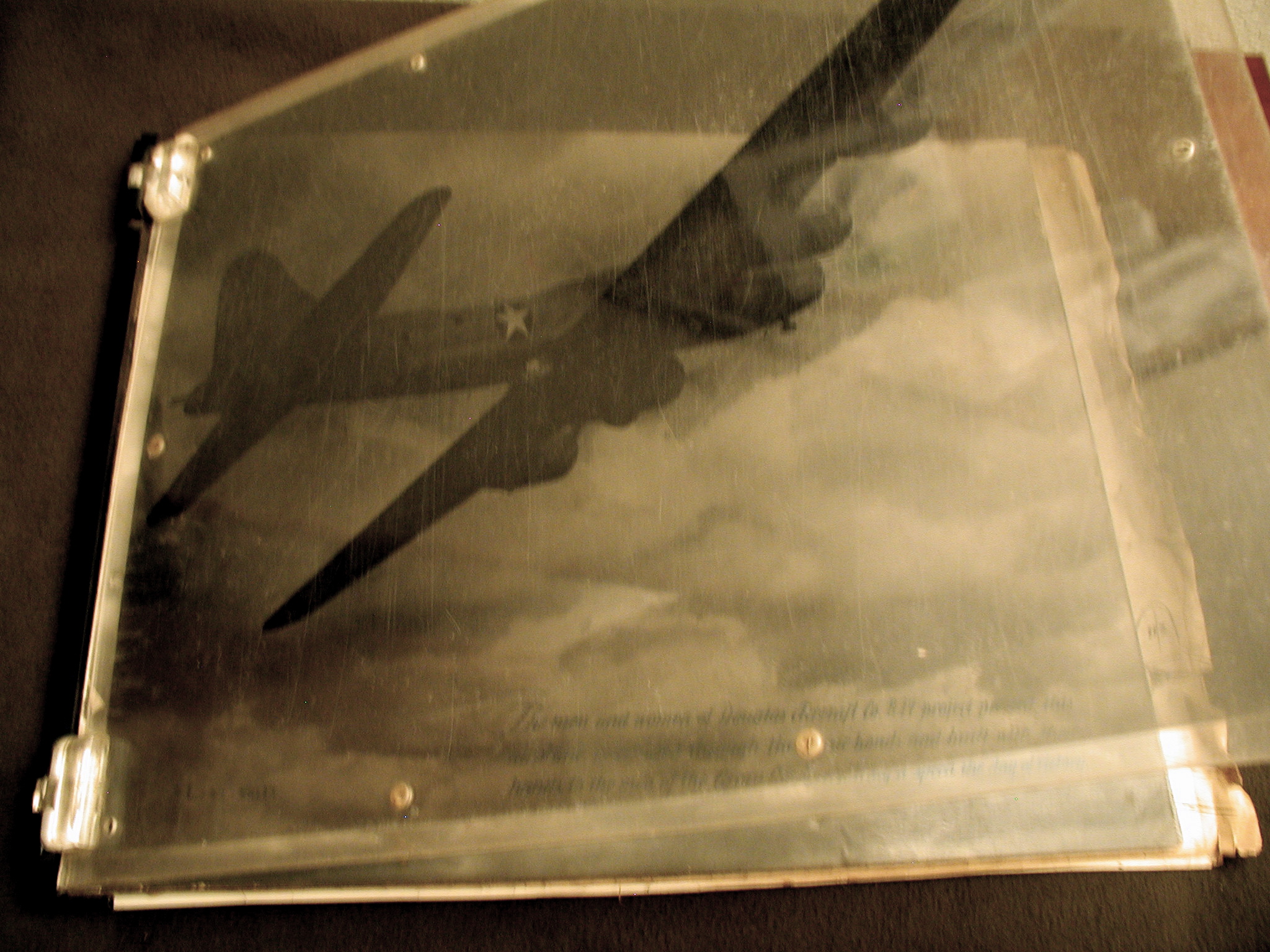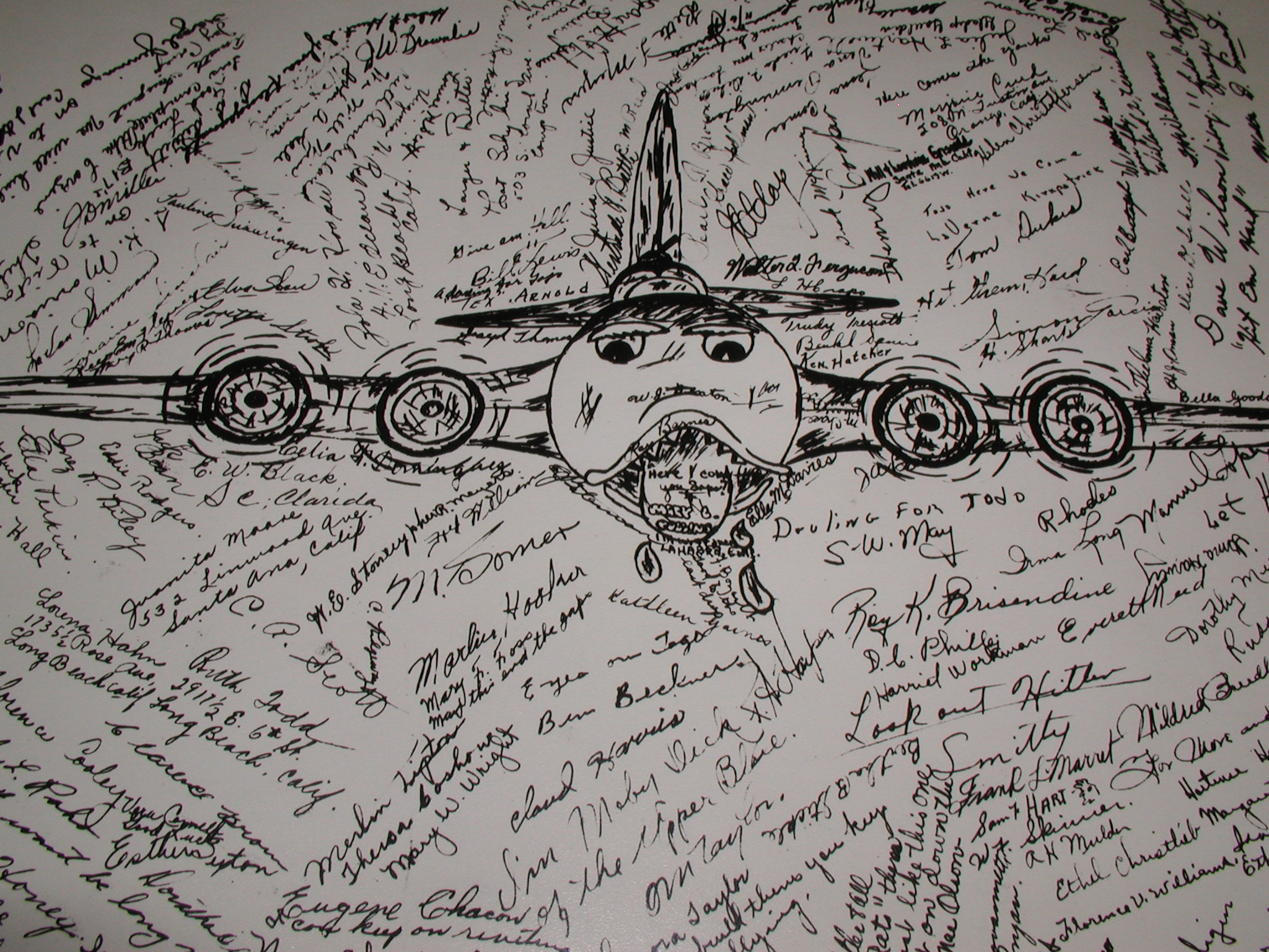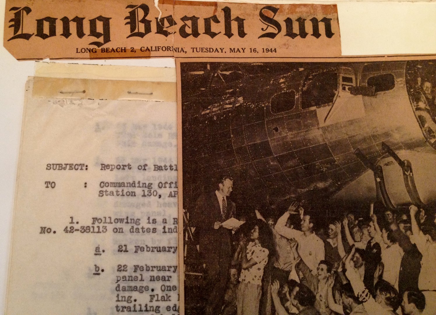 Late 1943 the Douglas Long Beach plant produced it’s 1000th B-17 bomber model G. The workers of the Douglas plant all payed for this special plane by bying war bonds. A book was made with photos, newspaper clippings about the plane and all the Douglas plant workers signed the book.