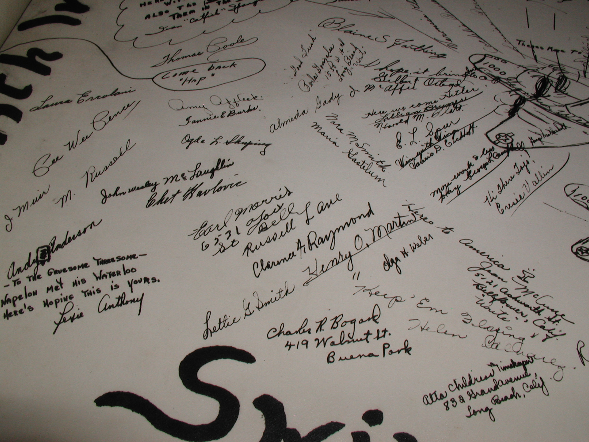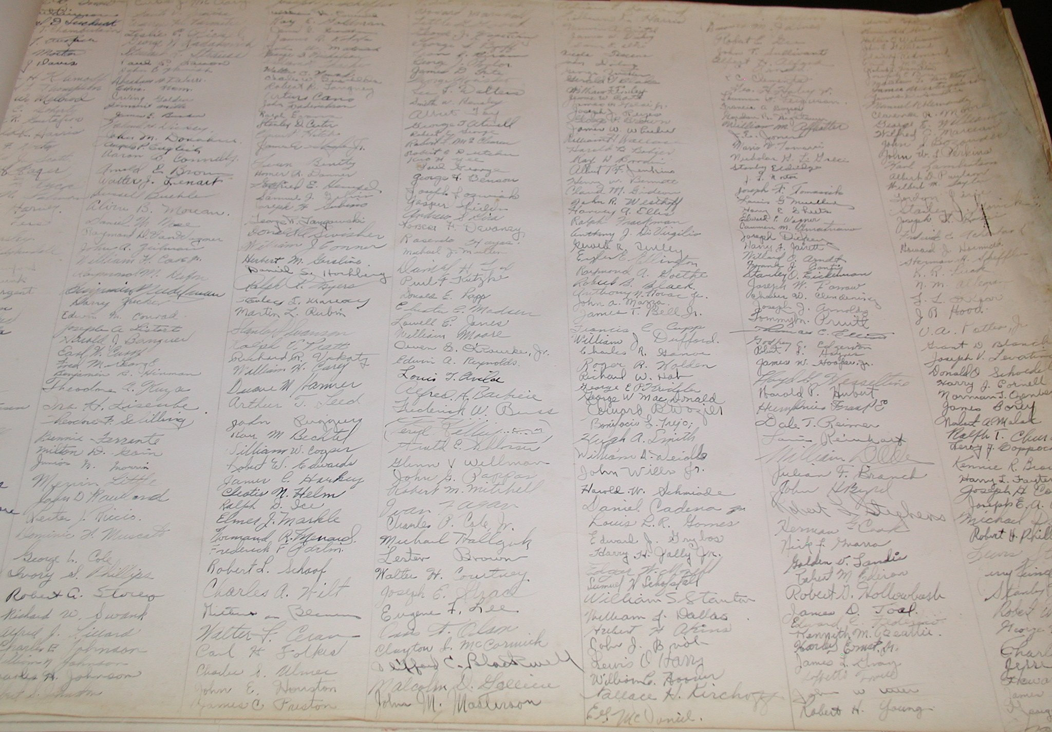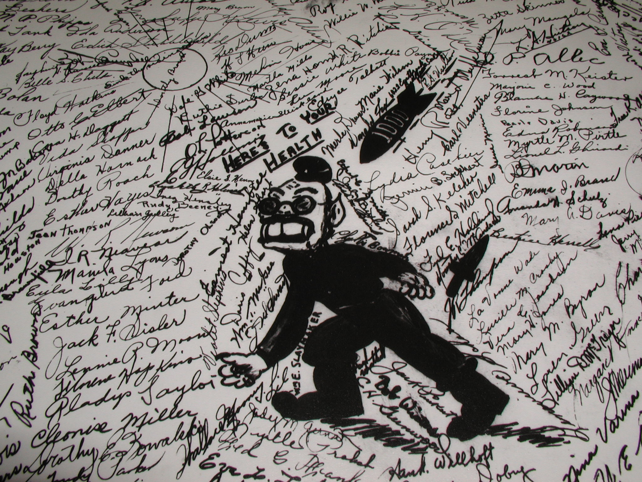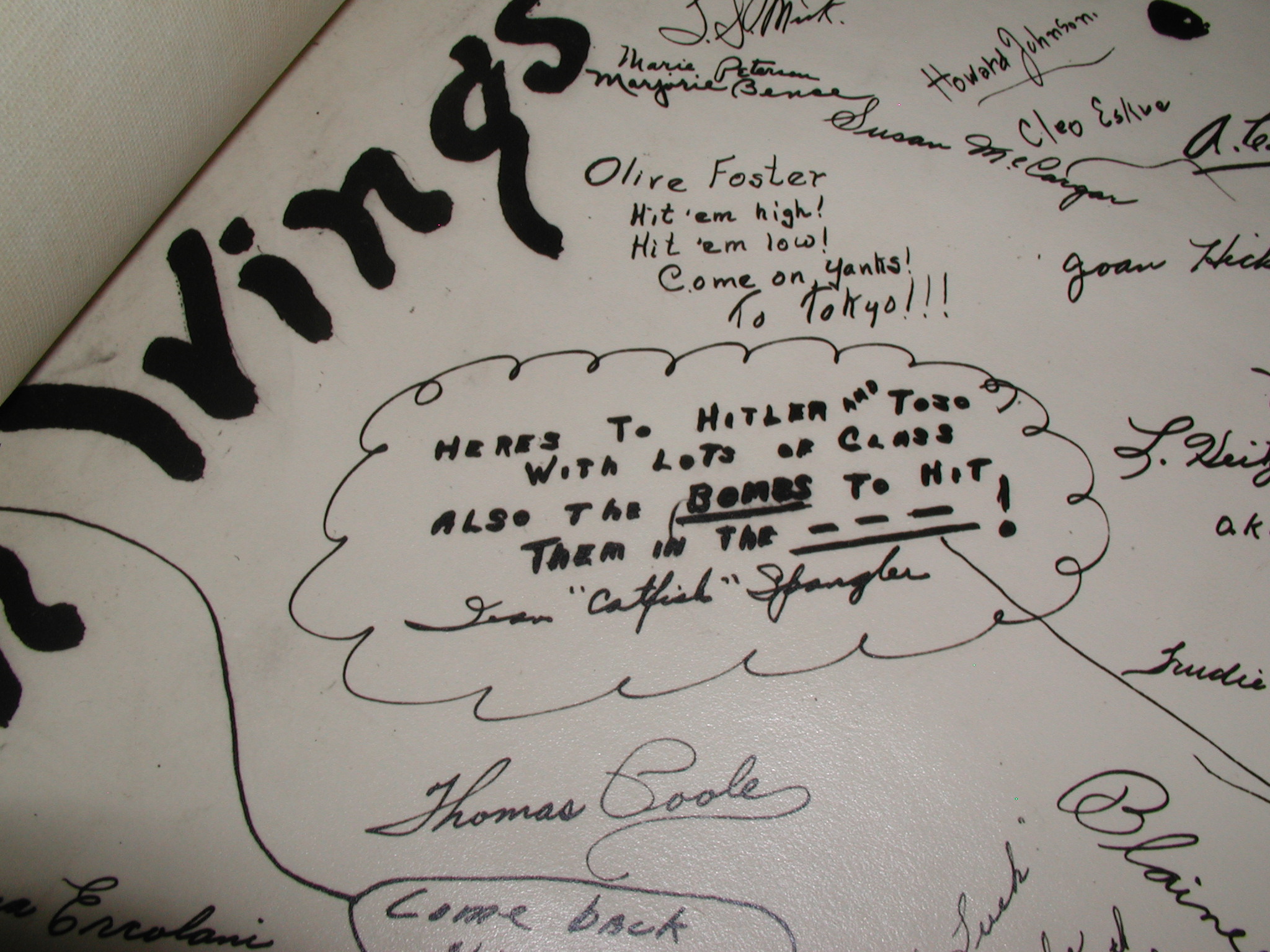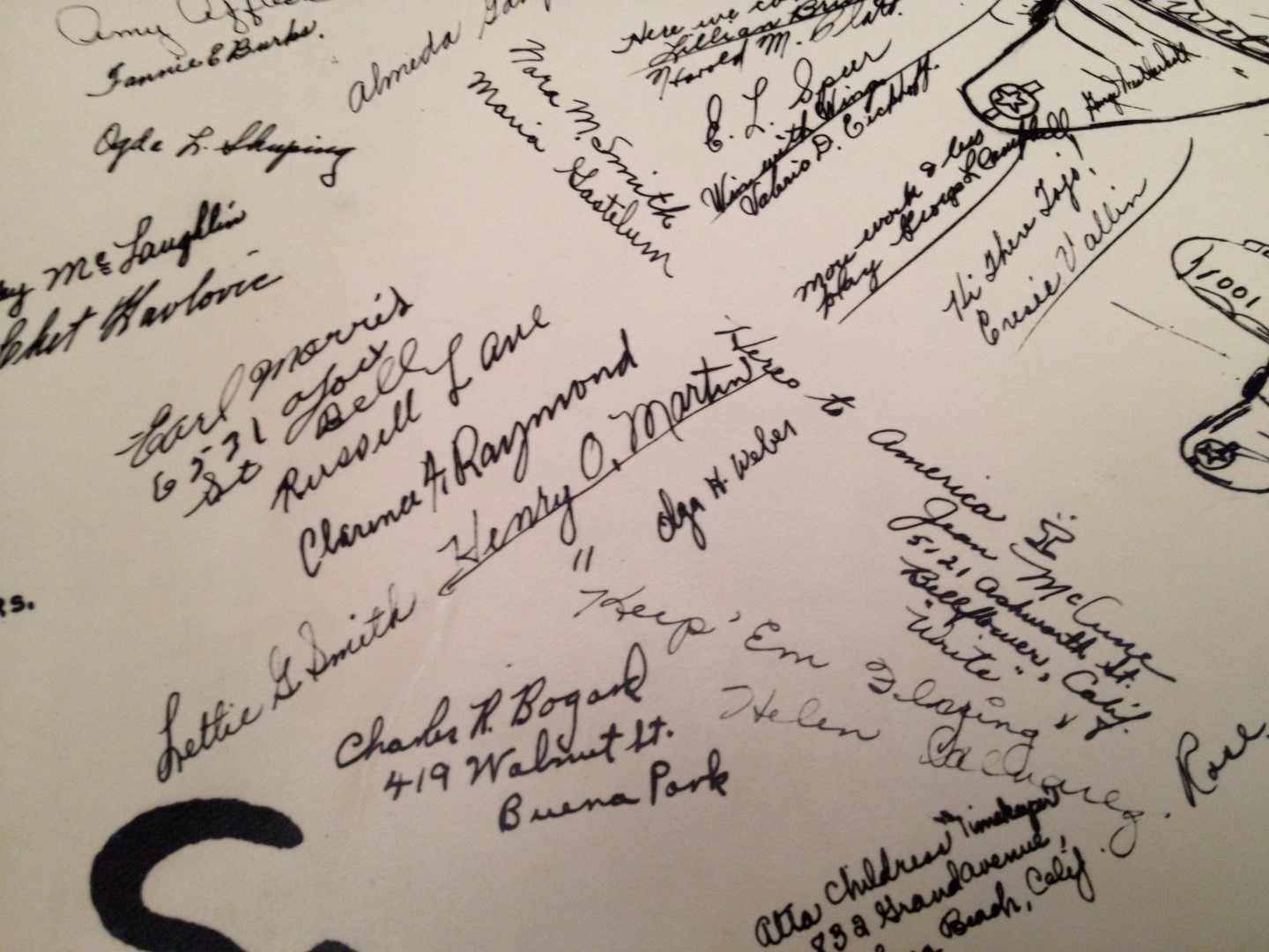 Late 1943 the Douglas Long Beach plant produced it’s 1000th B-17 bomber model G. The workers of the Douglas plant all payed for this special plane by bying war bonds. A book was made with photos, newspaper clippings about the plane and all the Douglas plant workers signed the book.