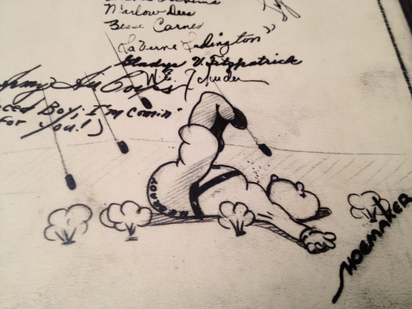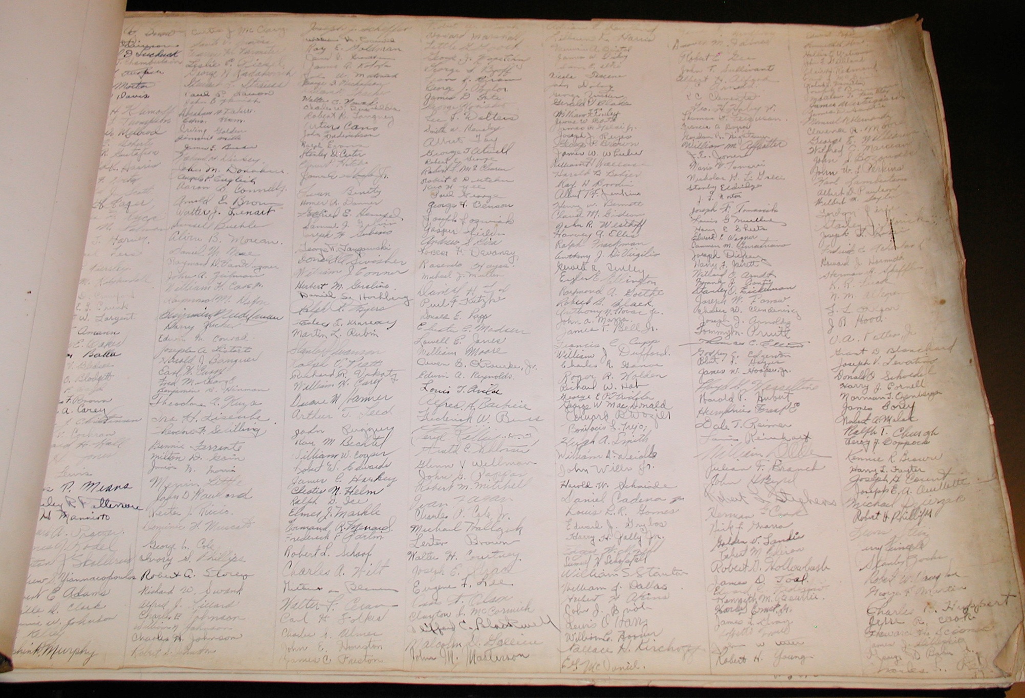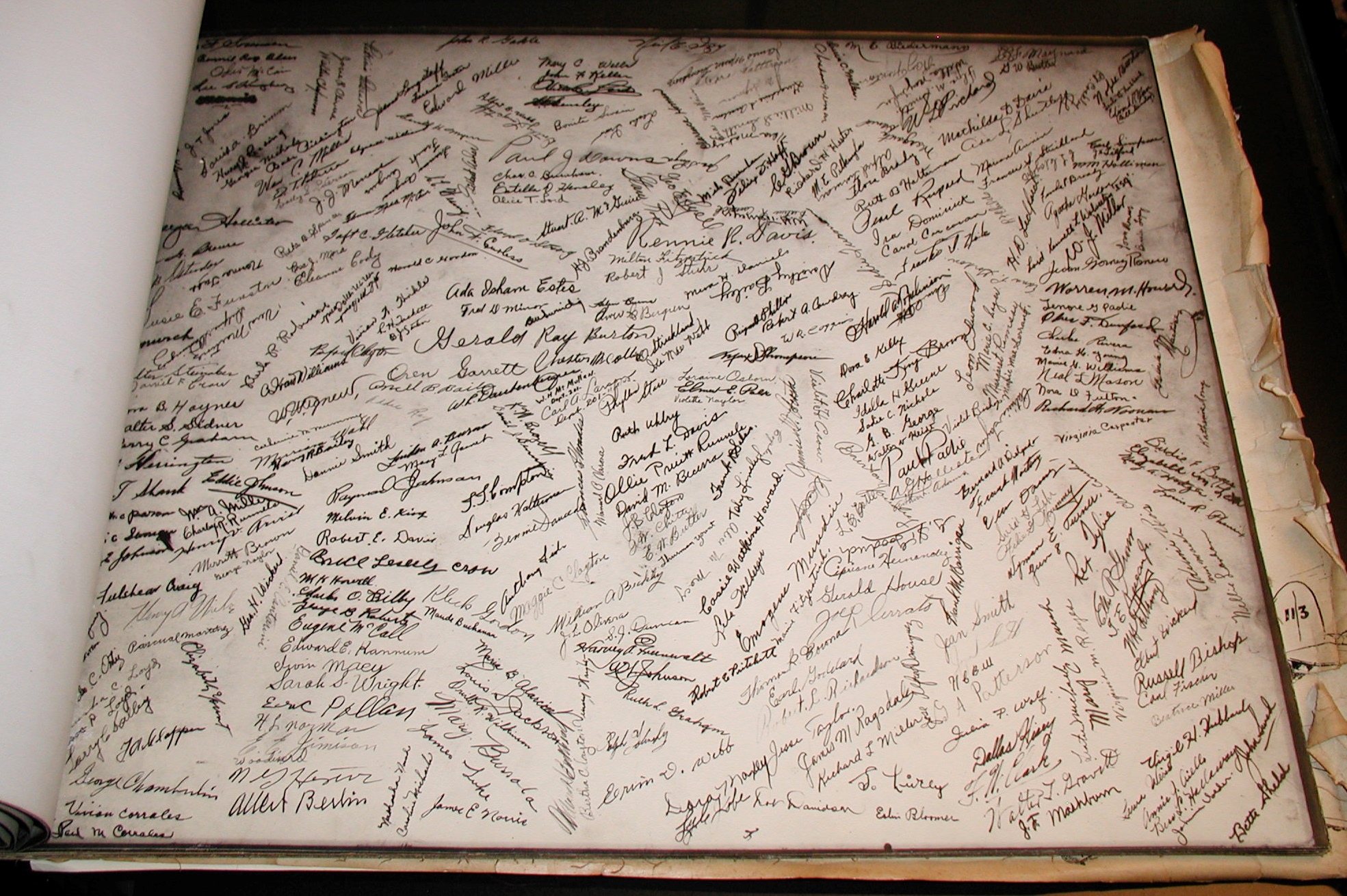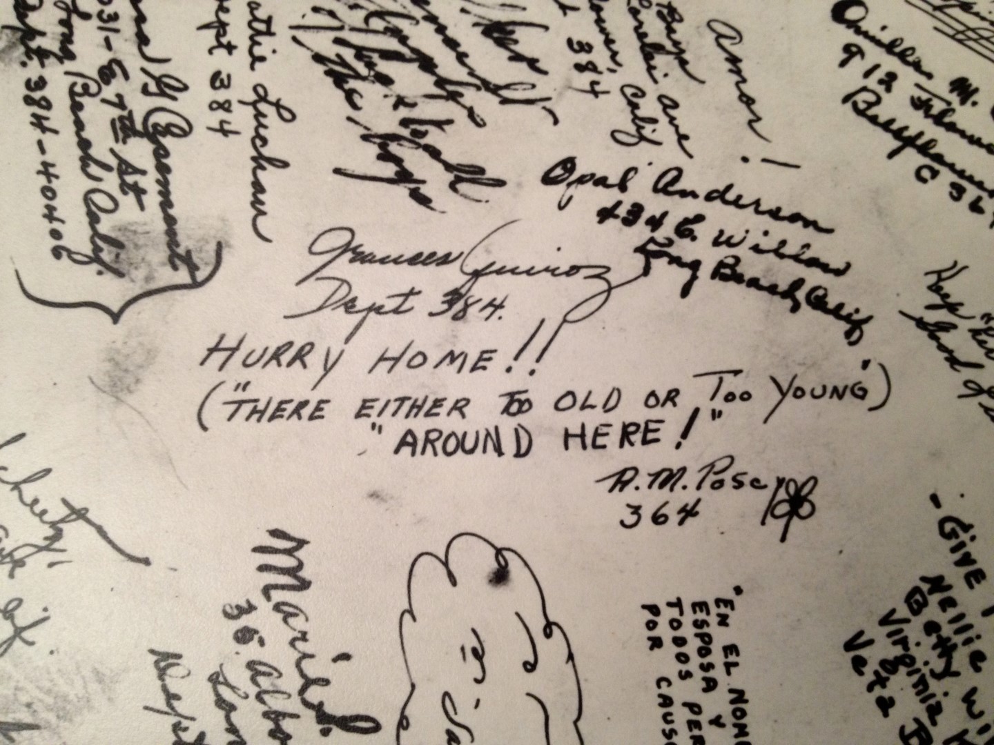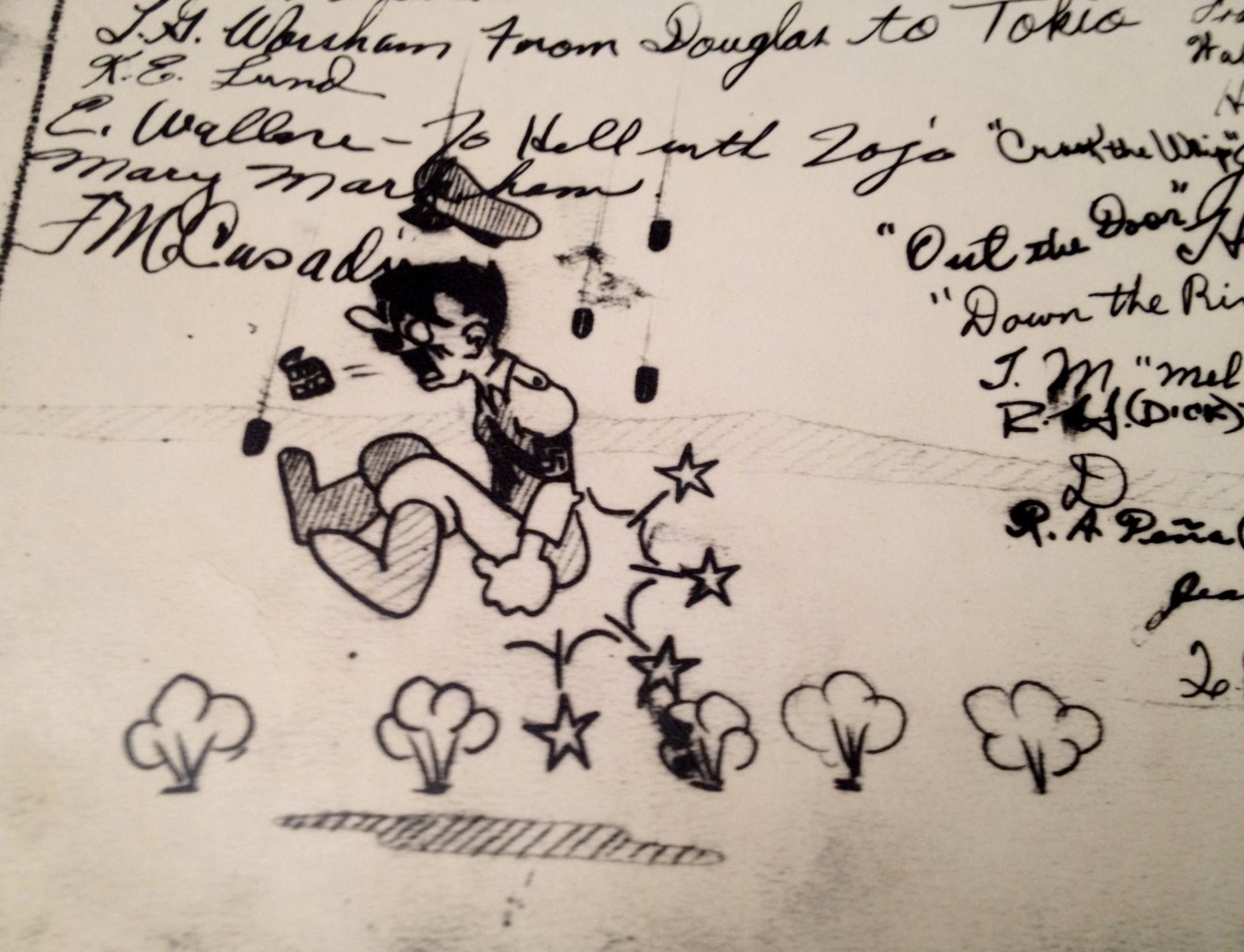 Late 1943 the Douglas Long Beach plant produced it’s 1000th B-17 bomber model G. The workers of the Douglas plant all payed for this special plane by bying war bonds. A book was made with photos, newspaper clippings about the plane and all the Douglas plant workers signed the book.