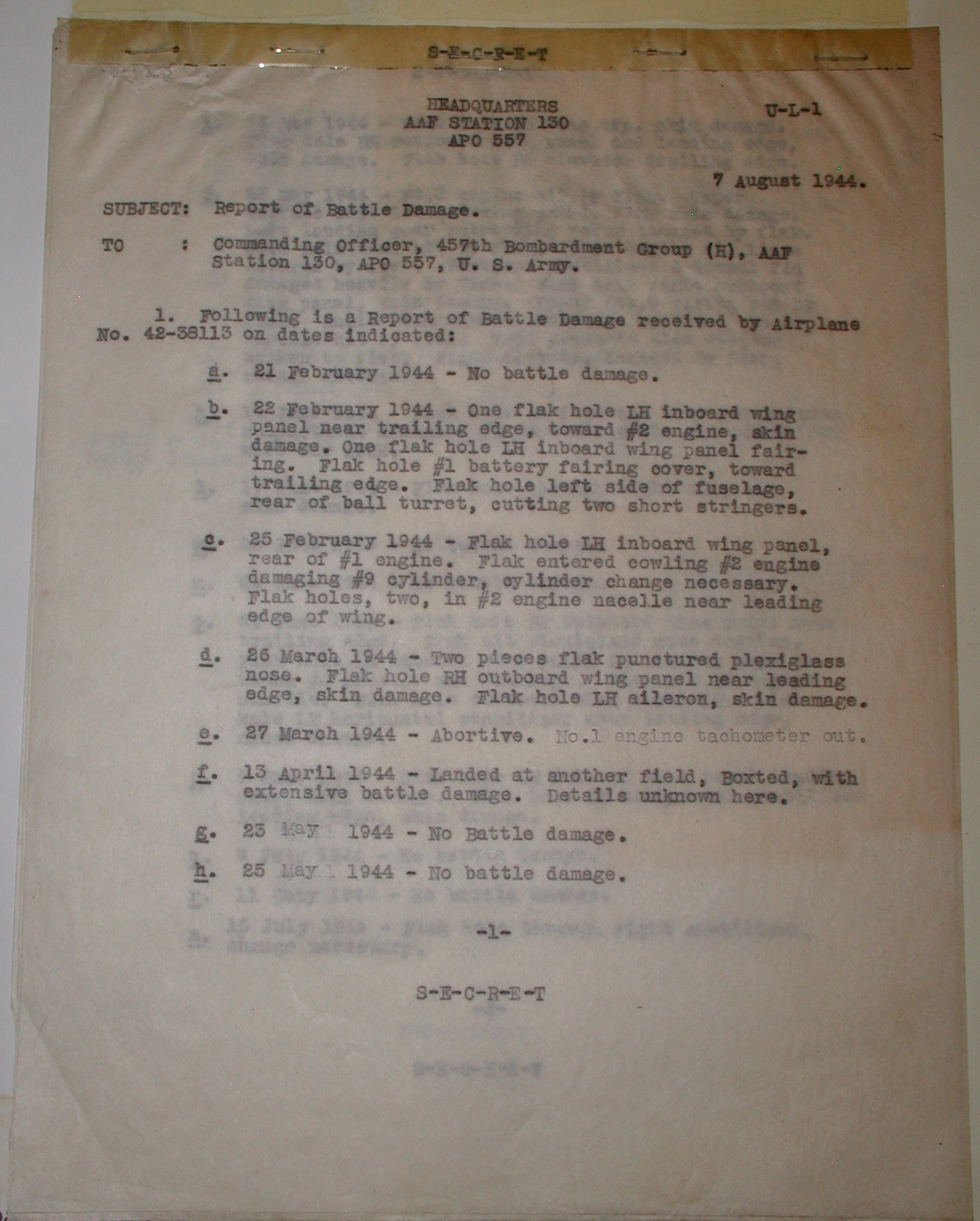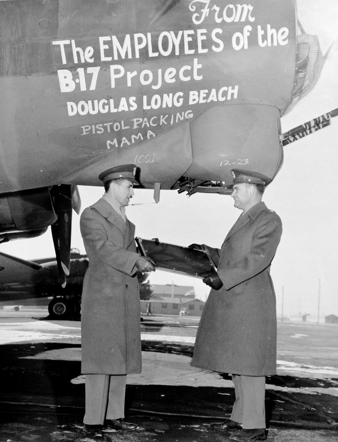 The plane and the book were given to the 457th bomb group and Luitenant Colonel J.R. Luper was proud to receive both wonderfull gifts. In January 1944 the plane, B-17G-30-DL 42-38113, was flown to it’s new home in England, Station 130 Glatton.