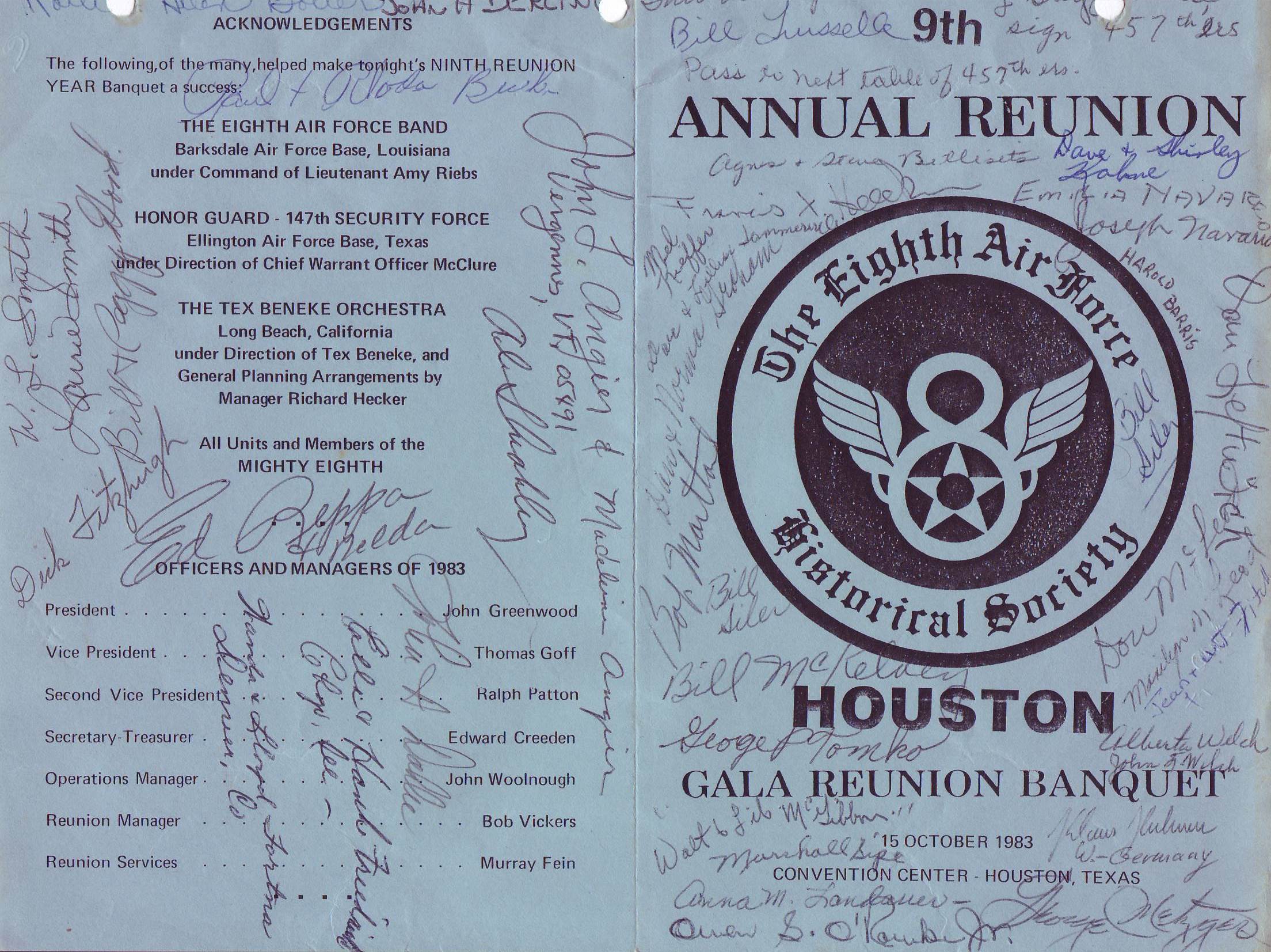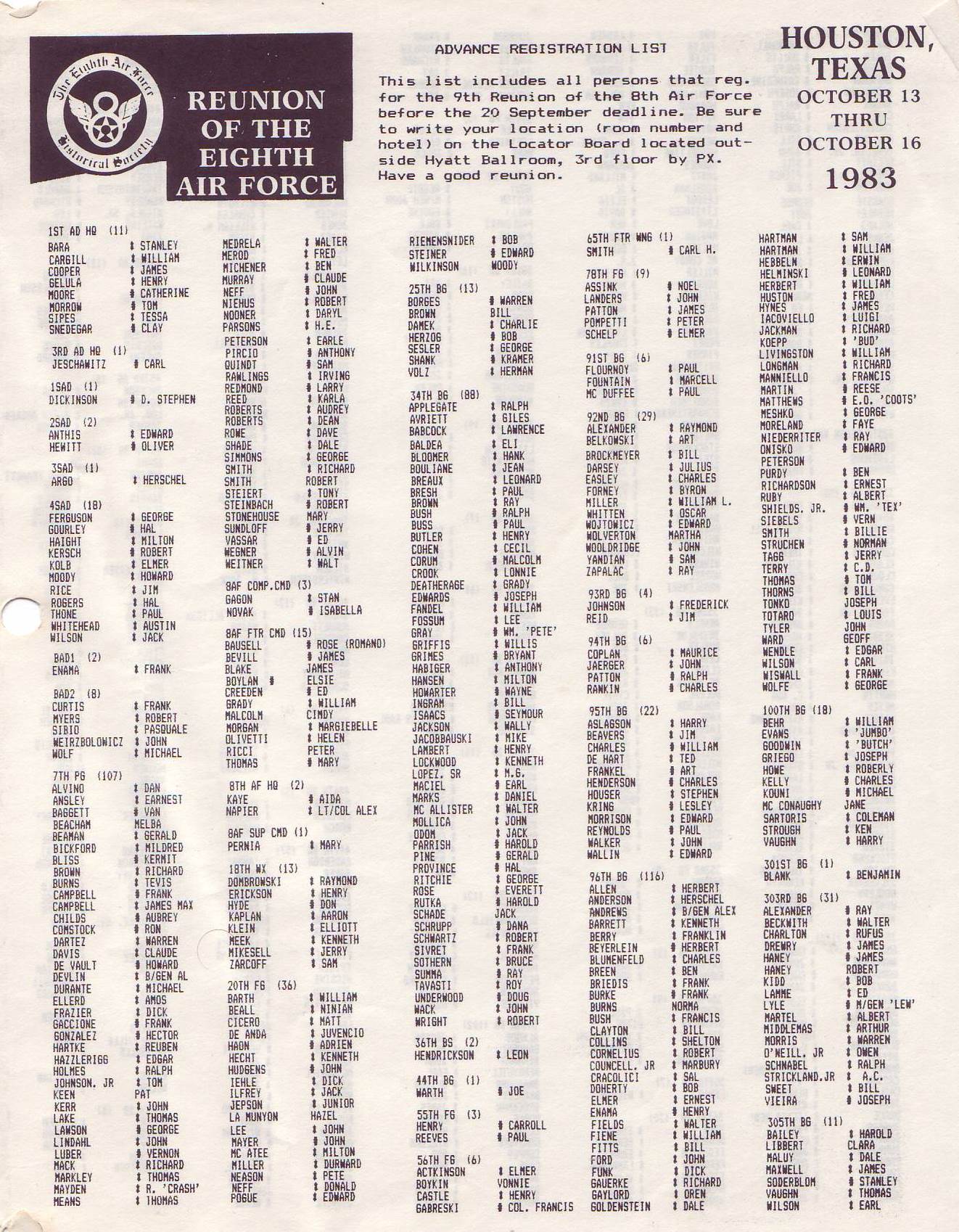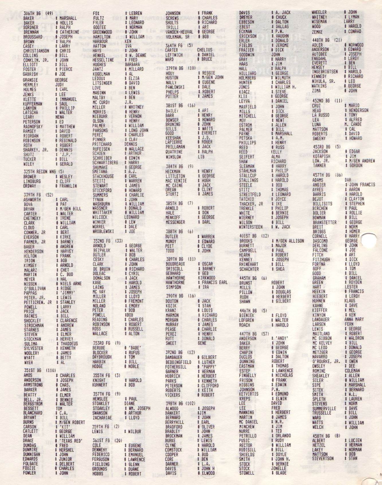 Reunion 1983 Reunion banquet Postcard 8th AFHS reunion 82 Memorial Wall 82 Memorial Wall dedication Memorial Wall dedication Reunion Registration Form Unit contact letter Membership meeting 82 Memorial Ceremony 82 Memorial Ceremony 82 Reunion banquet Reunion banquet Reunion banquet 82 Reunion banquet 82 Reunion notice Letter C. Bejot Reunion notice Reunion notices Newspaper article Details reunion Reunion notice Honor ceremony Eschortation Reunion movies Reunion program Reunion symposium Reunion symposium Reunion hotel Reunion attendees Reunion attendees Reunion attendees Reunion hotels Reunion information 8th AFHS reunion 8th AFHS reunion 8th AFHS reunion 457th reunion attendees Reunion notices Reunion notice Reunion notice Reunion notice Reunion notice