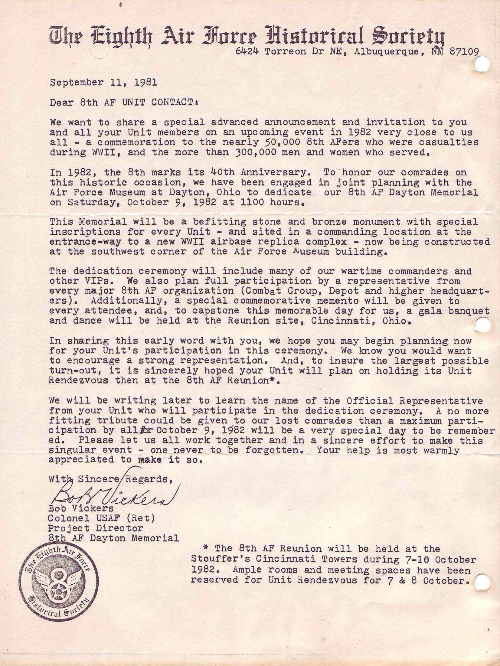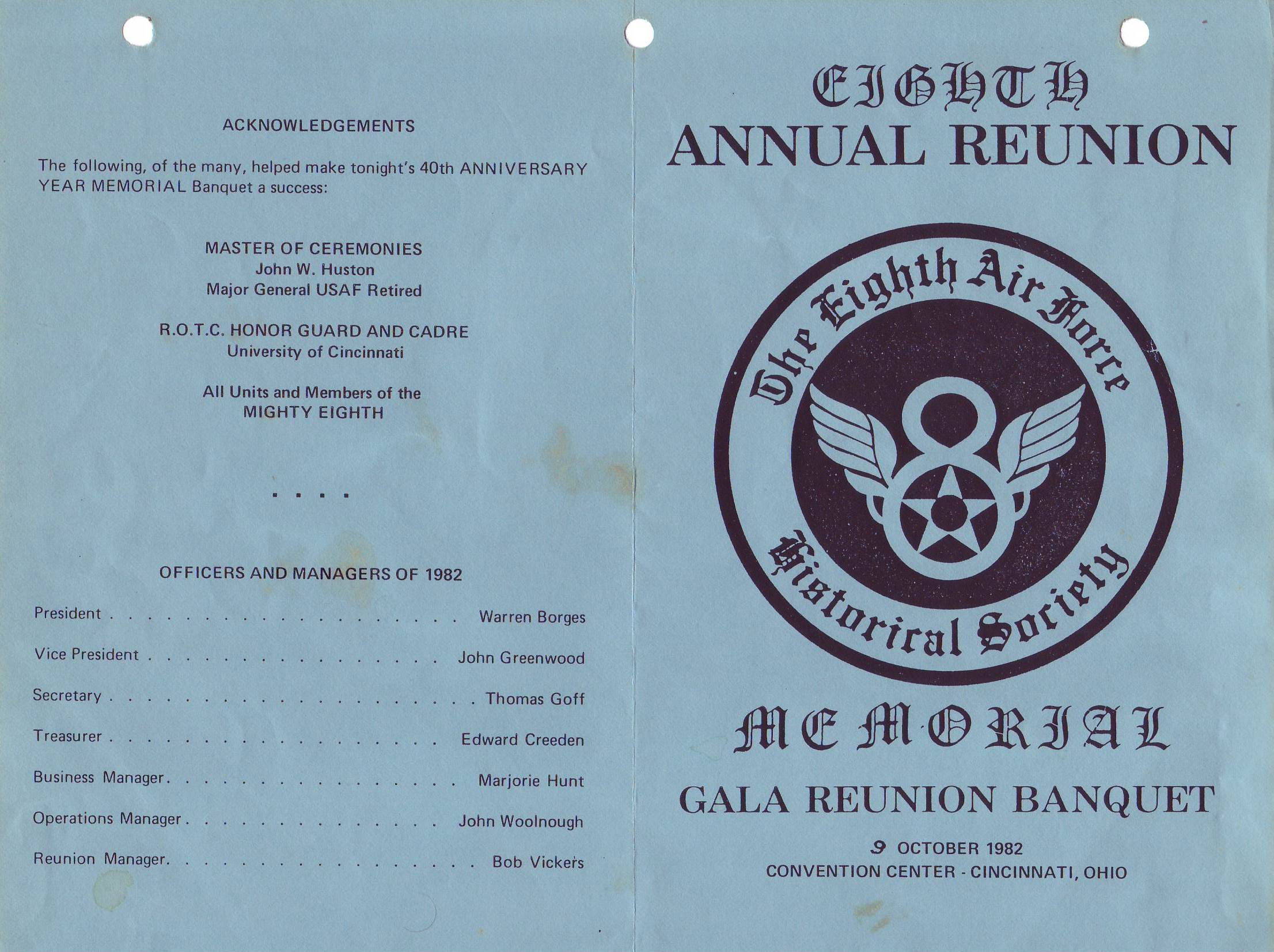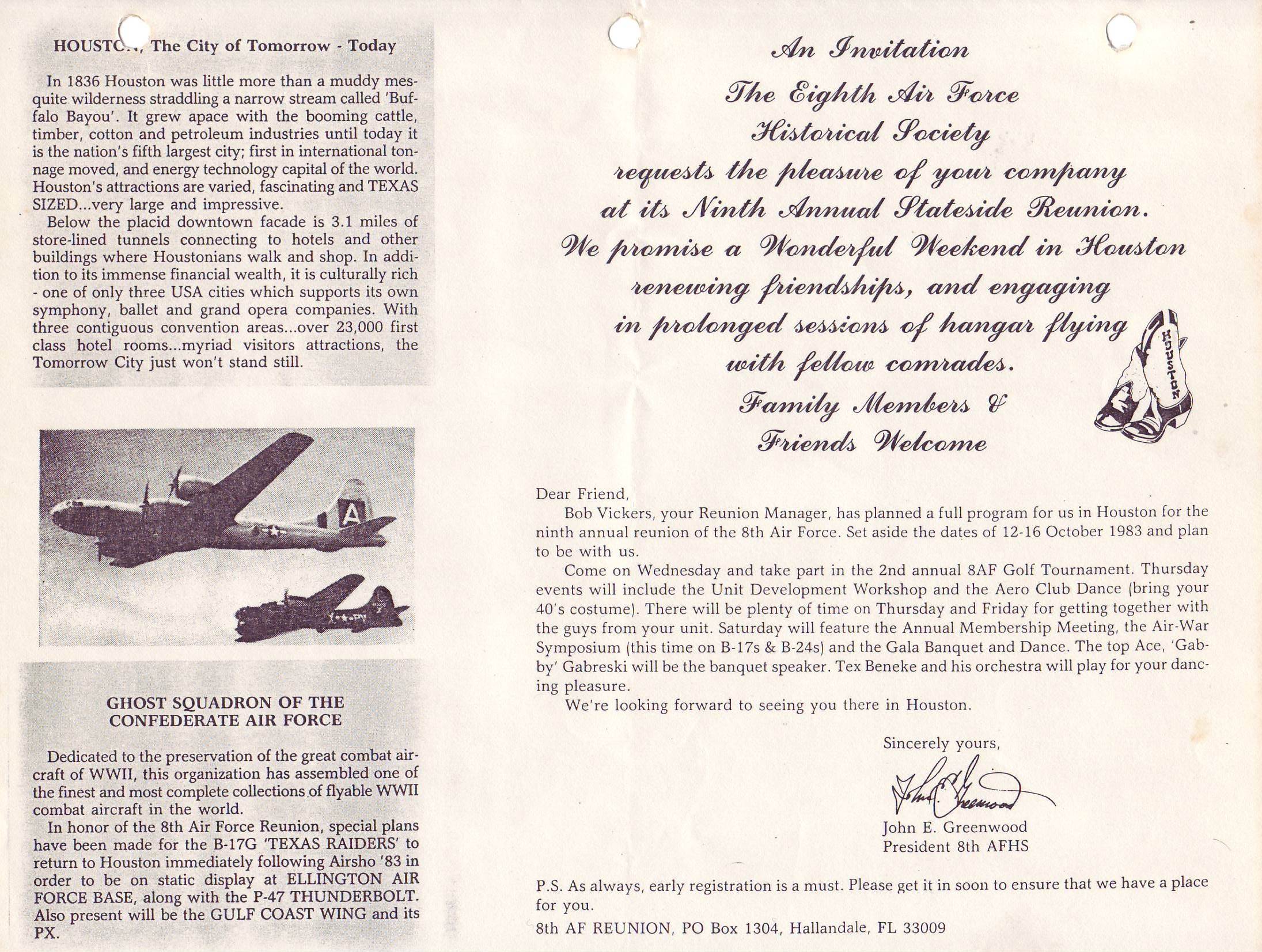 Reunion 1983 Reunion banquet Postcard 8th AFHS reunion 82 Memorial Wall 82 Memorial Wall dedication Memorial Wall dedication Reunion Registration Form Unit contact letter Membership meeting 82 Memorial Ceremony 82 Memorial Ceremony 82 Reunion banquet Reunion banquet Reunion banquet 82 Reunion banquet 82 Reunion notice Letter C. Bejot Reunion notice Reunion notices Newspaper article Details reunion Reunion notice Honor ceremony Eschortation Reunion movies Reunion program Reunion symposium Reunion symposium Reunion hotel Reunion attendees Reunion attendees Reunion attendees Reunion hotels Reunion information 8th AFHS reunion 8th AFHS reunion 8th AFHS reunion 457th reunion attendees Reunion notices Reunion notice Reunion notice Reunion notice Reunion notice