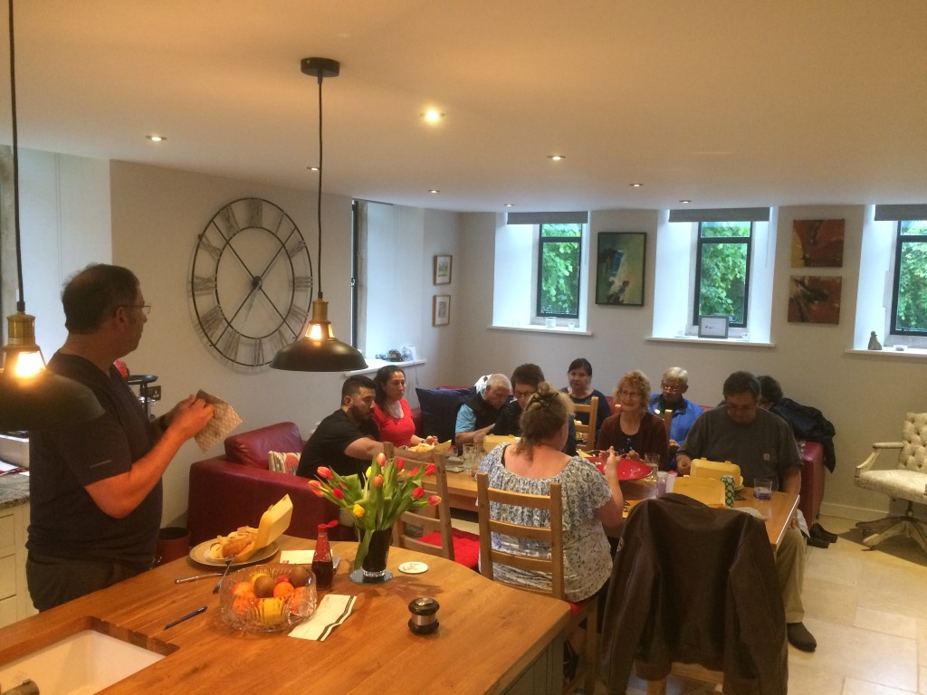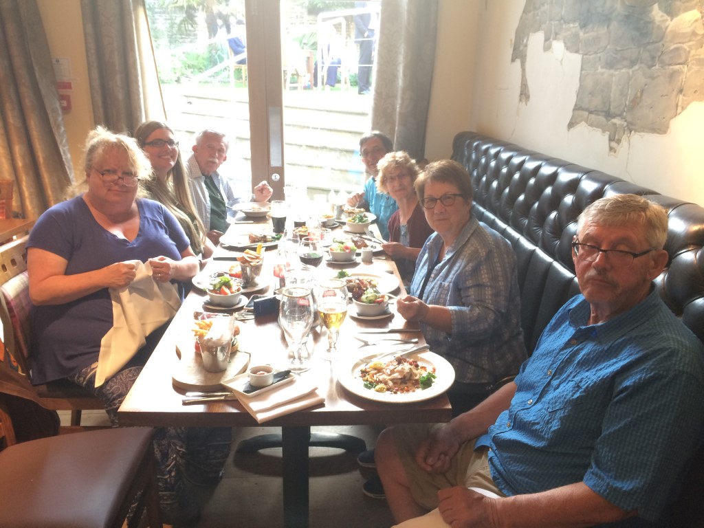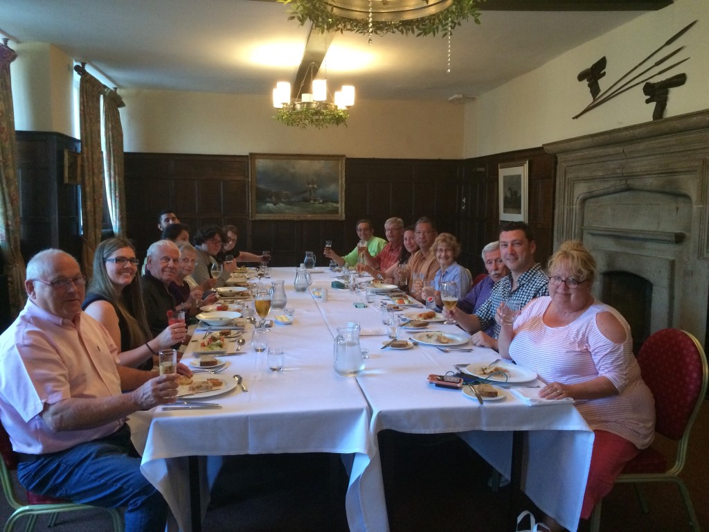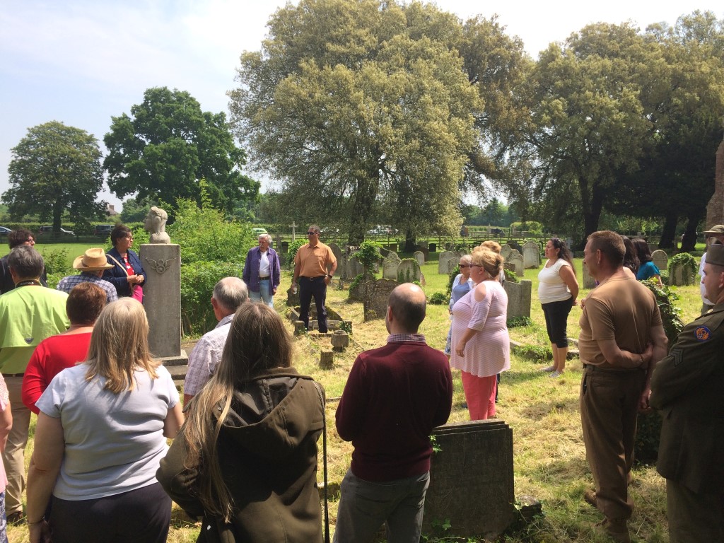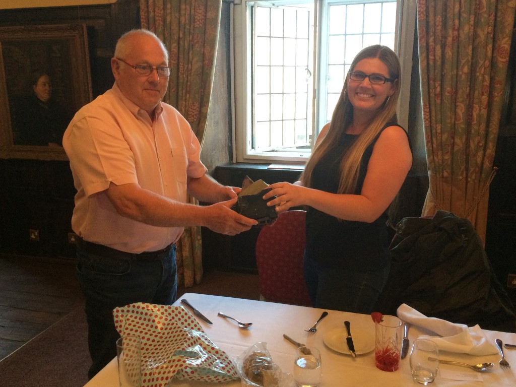 Sunday we had our memorial at the water tower monument. Many people attended the ceremony and we had a few jeeps and truck showing up too, one jeep had the 457th Bomb Group painted on the bumper. After the water tower we visited the church and stone airman, Conington Airfield and finished with some refreshments at the Admiral Wells pub. We met some great English friends and we hope these friendships will remain for many more years to come! That evening we had our farewell dinner at the Talbot Hotel. During the dinner Becky Bonner received some fragments of her grandfather’s plane which crashed in the Swiss Alps.
