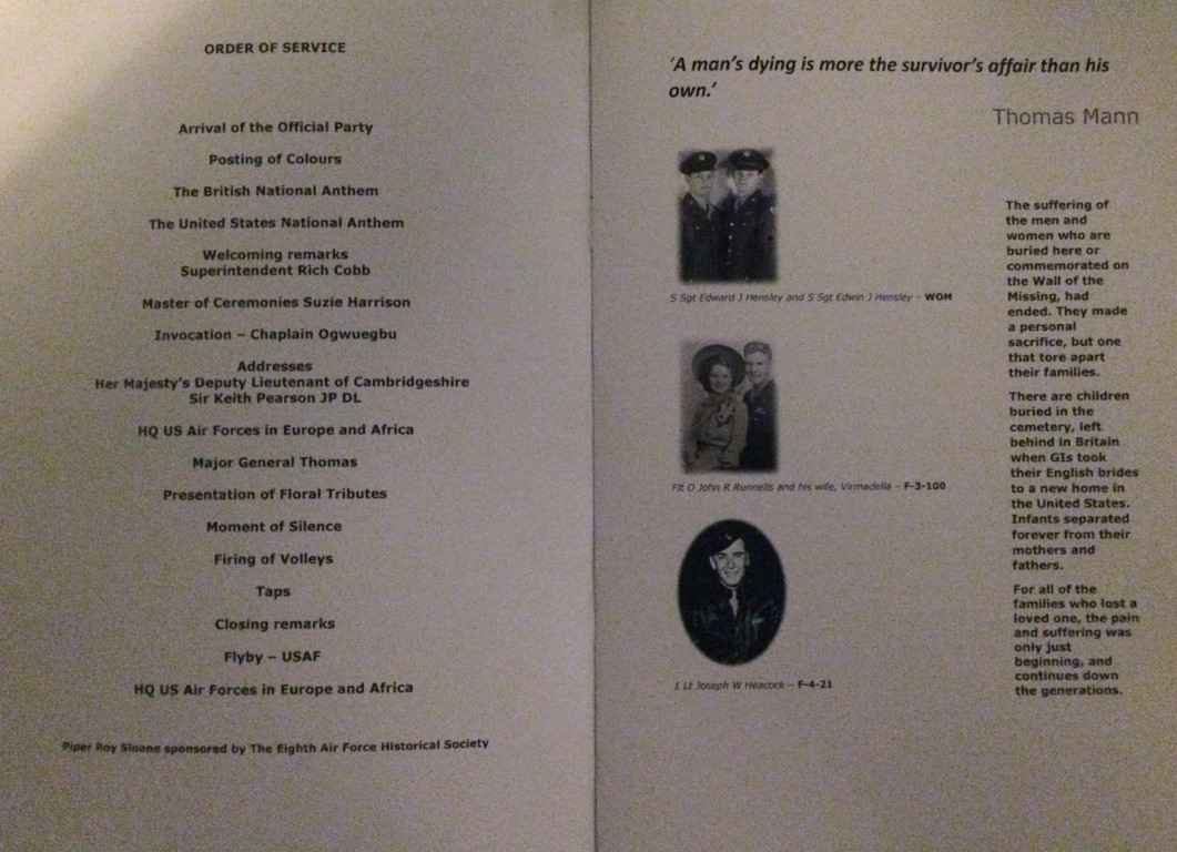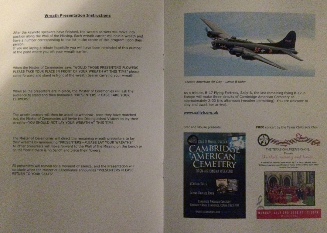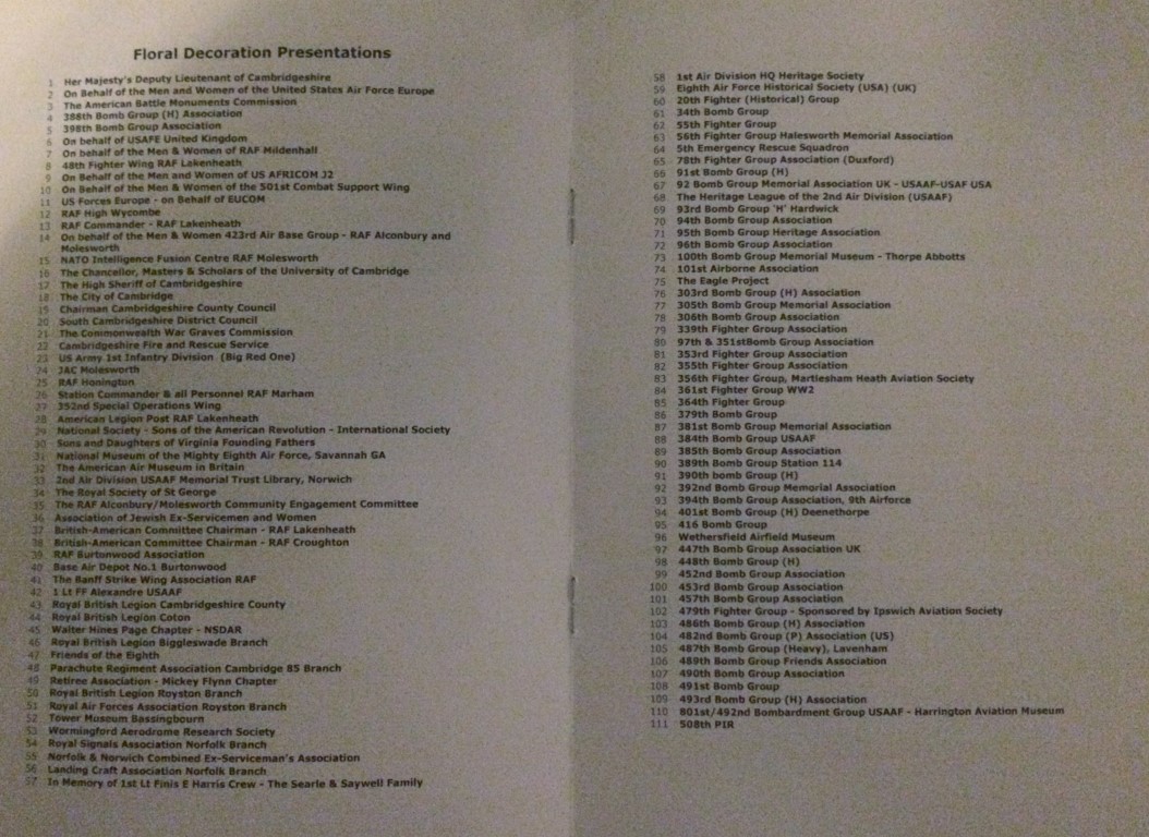 On Monday we visited the Memorial Day Service at Madingly American Cemetery. A very nice en respectful ceremony. Miss Cleo Giachino (niece of Don Charles Osborne, 748th BS) laid our wreath during the wreath laying ceremony.